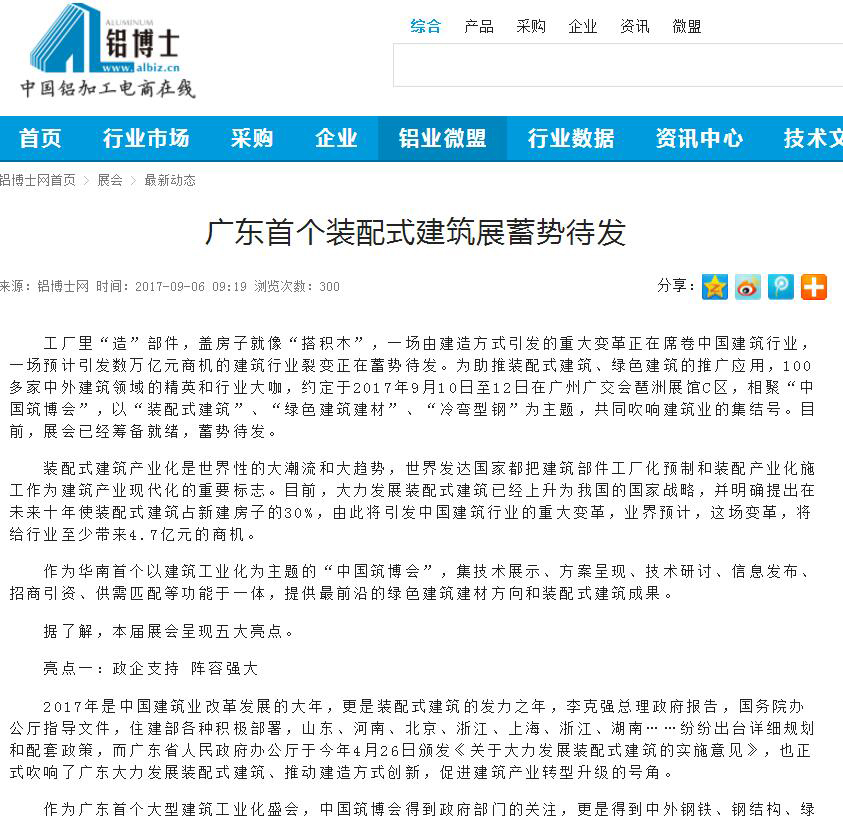 中國幕墻網(wǎng)發(fā)布有關(guān)2017中國筑博會·廣州開幕式的報道 (2017-10-30)