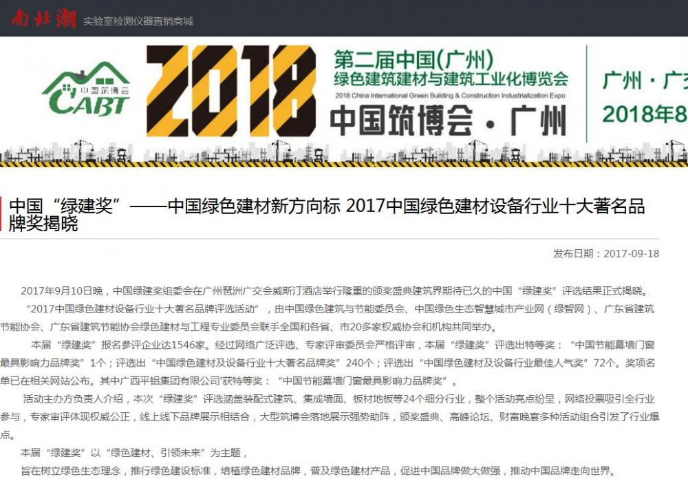 中國自動化網(wǎng)發(fā)布有關(guān)2017中國綠色建材設(shè)備行業(yè)十大著名品牌獎的報道 (2017-10-30)