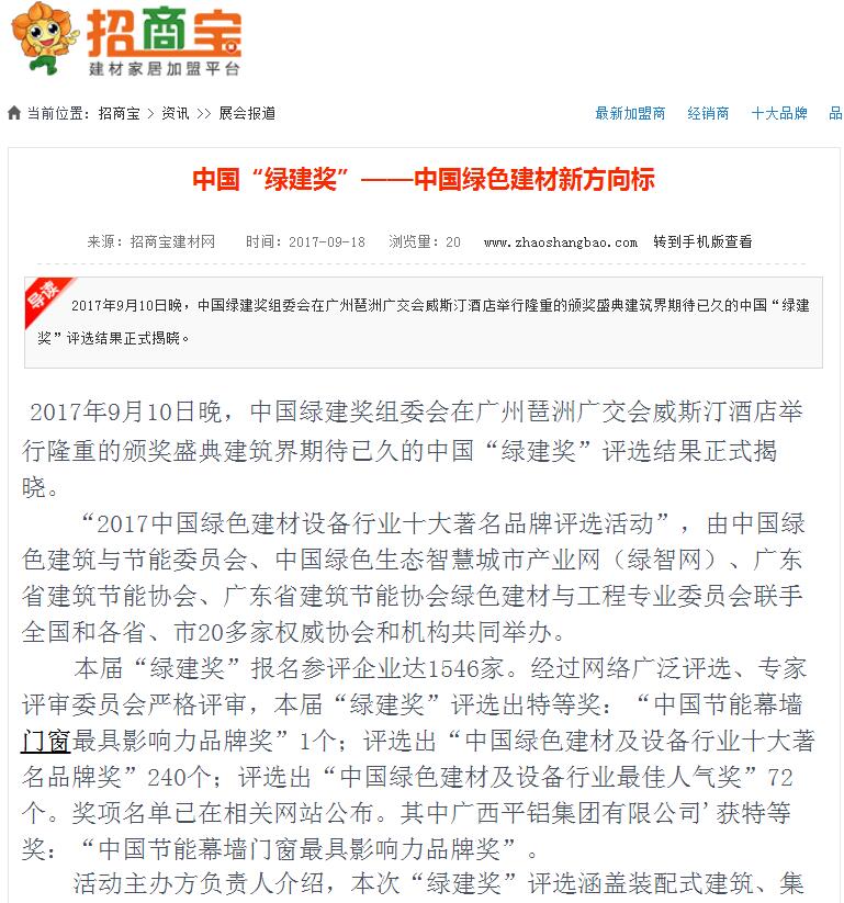 廣告買賣網(wǎng)發(fā)布有關(guān)2017中國綠色建材設(shè)備行業(yè)十大著名品牌獎(jiǎng)的報(bào)道 (2017-10-30)
