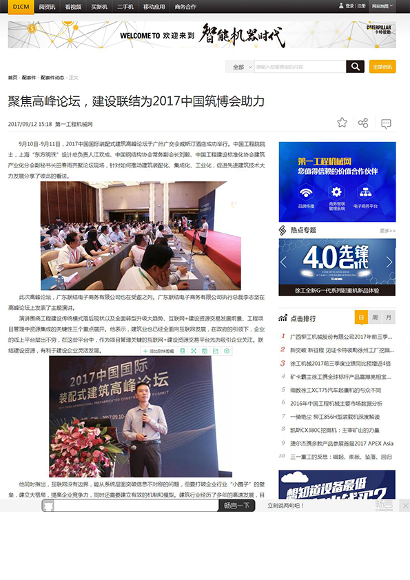 建設行業(yè)信息網發(fā)布有關2017中國粵西國際建設發(fā)展合作峰會的報道 (2017-10-31)