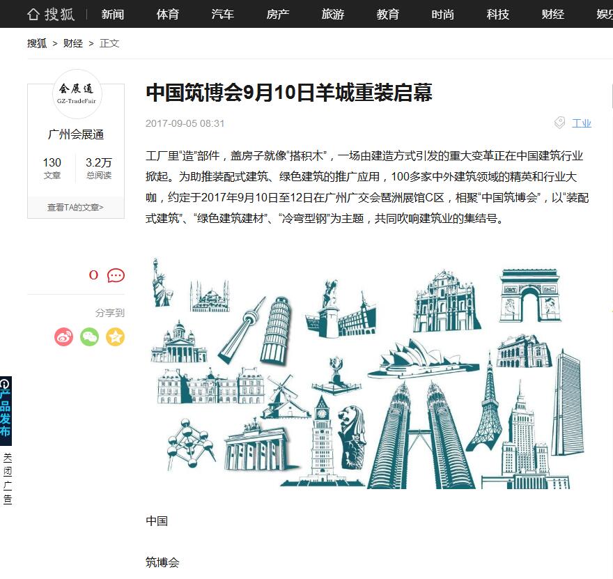 南方都市報(bào)在搜狐·財(cái)經(jīng)網(wǎng)發(fā)布有關(guān)2017中國(guó)筑博會(huì)·廣州的報(bào)道 (2017-11-01)