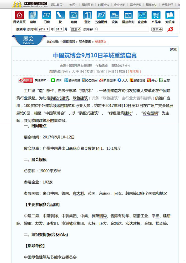 中國門都網(wǎng)發(fā)布有關2017中國筑博會·廣州的報道 (2017-11-01)