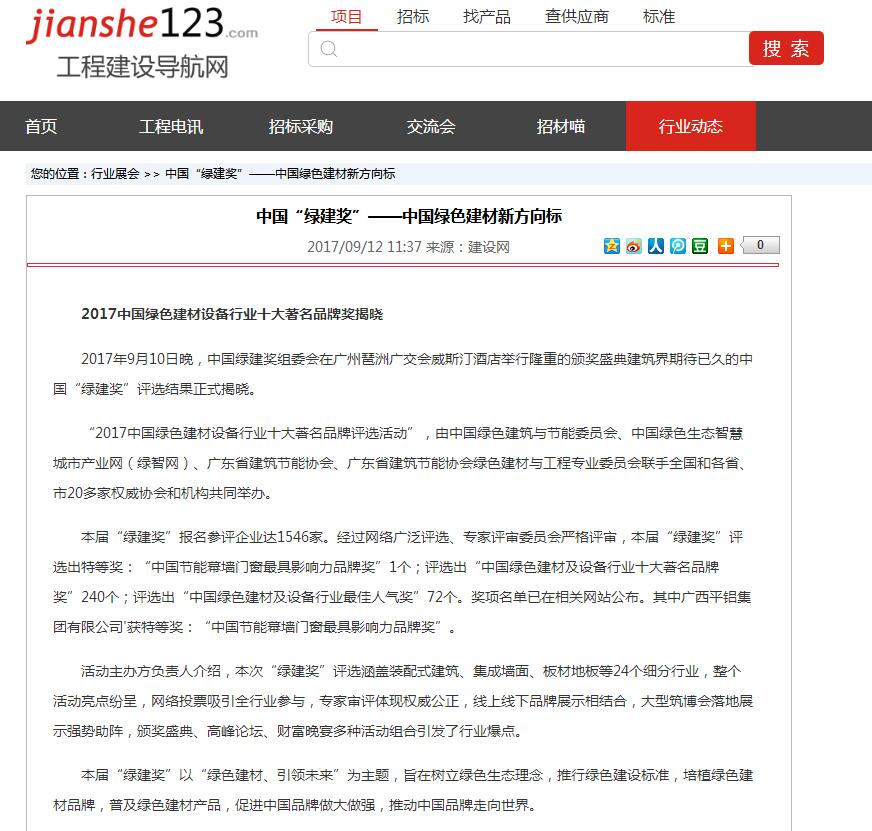 中國(guó)幕墻網(wǎng)發(fā)布有關(guān)2017中國(guó)筑博會(huì)·廣州的報(bào)道 (2017-11-01)