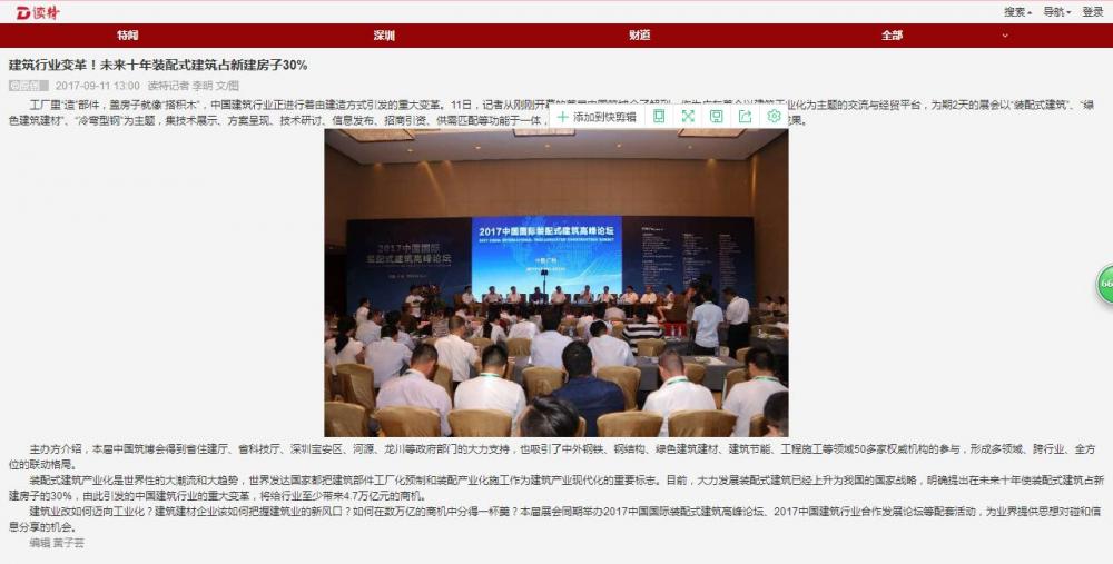 深圳商報發(fā)布有關(guān)2017中國筑博會·廣州的報道 (2017-11-01)